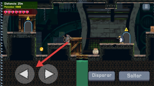 进入游戏场景后,可借助左下角的左右方向键操控角色移动,以此躲避障碍、靠近敌人或是收集金币。