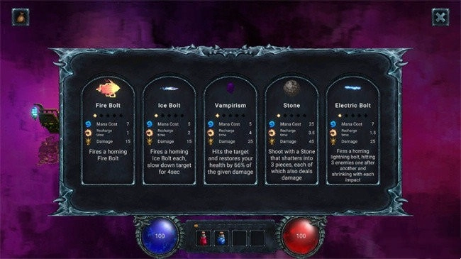 游戏里有不少法杖、药水这类带有RPG属性的物品,还提供了丰富多样的咒语和技能供玩家挑选。