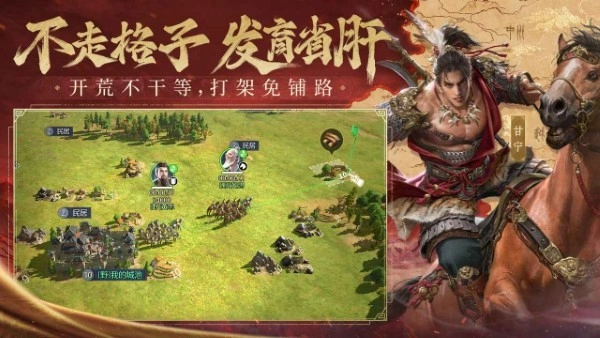 开荒不干等,打架免铺路!彻底告别格子束缚!全沙盘地图装配自由行军系统,你可蛇形走位诱敌深入,也可迂回包抄截断粮道。