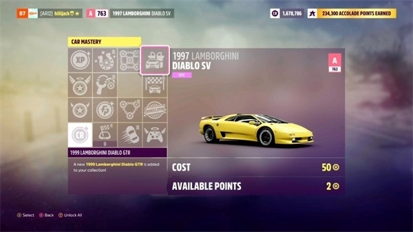 1999款兰博基尼Diablo GTR——车辆熟练度对应兰博基尼Diablo SV