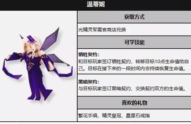 2、建议玩召唤师的玩家选择温蒂妮,它的技能都和契约相关,而且颜色是黑色,和死神的风格很搭。虽然技能作用看起来更偏向于PVP,但玩召唤师选欧若拉总感觉有点违和,所以更推荐选温蒂妮这个精灵。
