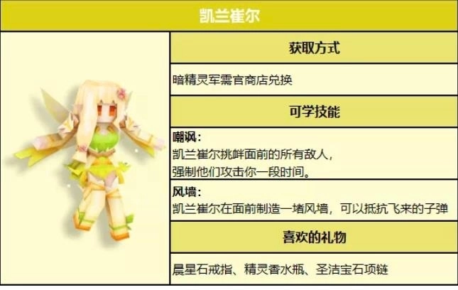 4、推荐玩骑士职业的玩家选择凯兰崔尔,它的挑衅技能能让你拉怪更稳,还能释放风墙阻挡飞行攻击,再搭配骑士自带的冲撞技能,玩起来会有类似亚索的操作快感,不过这是个肉坦型的“亚索”,输出能力比较弱。