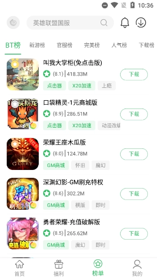 实时更新BT、新游、完美、人气等各类榜单,数据经过严格审核确保可靠,收录的均为优质热门游戏,玩家可根据喜好自行挑选。