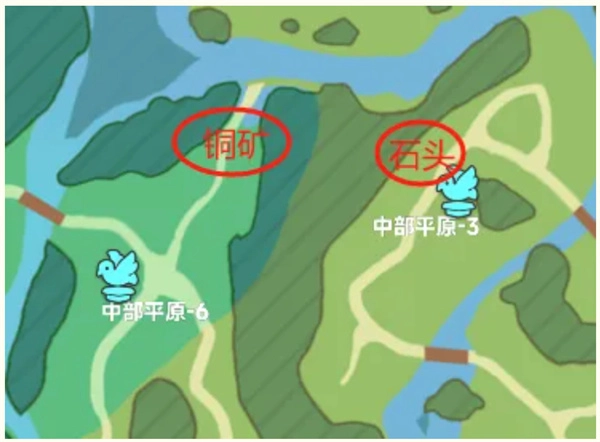 4、其次是领地或公会资源点的采集。我们在探索领地的地图时,需要耐心探索,其中蕴藏着不少可以采集的资源,特别是石头和铜矿!下面是在多次探索下总结出来的两个常见刷新位置,距离传送驿站很近。中部平原-3(石头)、中部平原-6(铜矿)。