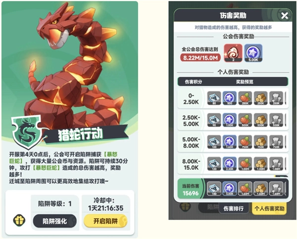 7、此外,参加各种公会活动,如猎蛇行动、奥米茄超频、巨兽讨伐、先锋计划等,也能获取海量资源噢!尤其是【猎蛇行动】,伤害奖励中含有非常多宝贵资源。