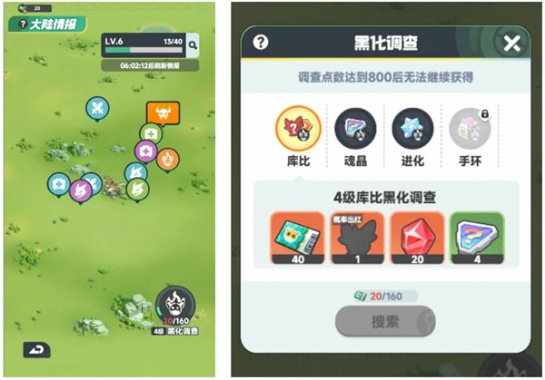 6、新大陆获取,完成主线任务(主角等级13级),并且结算里程碑事件后,我们就可以乘坐飞艇启航前往领地外的区域啦!点击屏幕右下角进入全新玩法,就可以搜索并讨伐黑化库比,成功后即可获得大量资源。