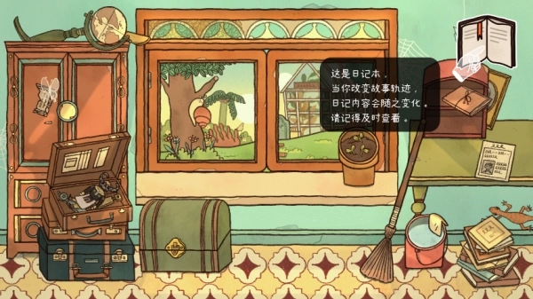 3、界面的右上角设有“日记本”功能,一旦玩家对故事的发展轨迹做出改变,日记本里的内容也会相应地发生变化。