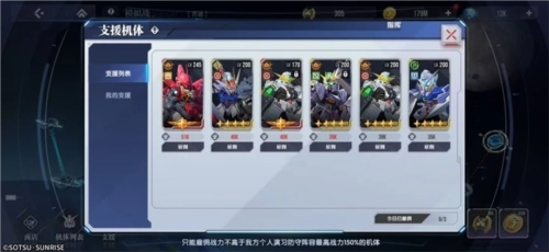 合理利用每天3次支援机体出战。尽量安排到最后几关使用支援机体,填补后期自己机体的战损。