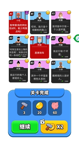 4、每点开一个好人卡面都会给出更多的线索。