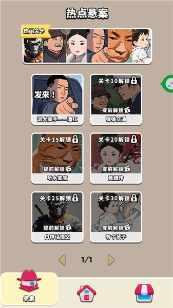 9、点击左下角的悬案,可游玩通过通关关卡解锁的热点悬案。