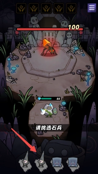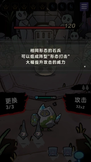 3、遭遇敌人时,在回合战斗中挑选自己要使用的石兵;