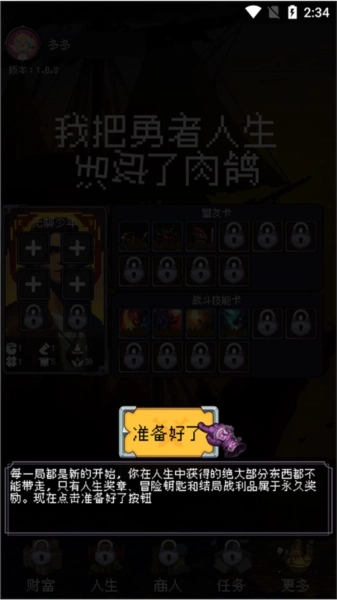 1、打开《我把勇者人生活成了肉鸽游戏》,点击“准备好了”按钮开始游戏;