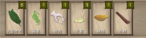制作消耗:饱食度-5、水分-5、体力-20