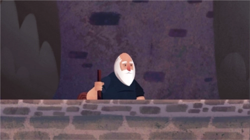 3、触发剧情:点击正在睡觉的懒猫,它会立刻惊醒,随即跳到前方的房顶上,而老人也会跟着起身,准备继续赶路。