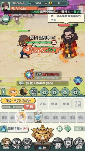伙伴养成:在《斗破苍穹萧门篇》游戏里,会有许多大家熟悉的角色登场,玩家能够和这些角色一同战斗,携手成长。