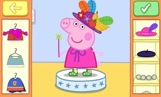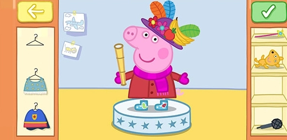 3、通过选择不同的服饰、饰品,自由的搭配小猪佩奇的造型;