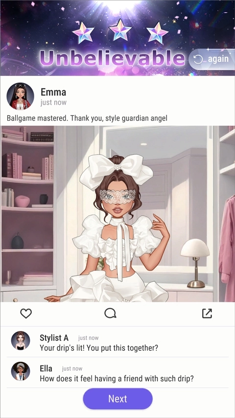 5、游戏内设置了丰富的剧情对话,玩家需要依据相应要求完成搭配任务。