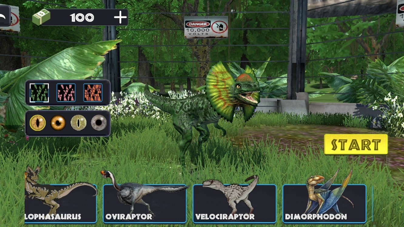1、进入游戏后,我们能够挑选一只恐龙,通过游玩游戏获取资金,进而解锁更多种类的恐龙。