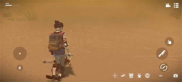 1、进入死亡荒地生存游戏后,左侧按钮用于操控角色移动,右侧按钮则负责发起进攻。
