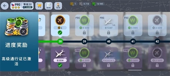 3、游戏内的飞机种类相当丰富,涵盖了市面上的主流机型,具体分为小型、中型、大型和超大型四个类别。玩家要获取飞机,需先消耗金币解锁机型,之后再用绿币完成购买。游戏中的手册功能类似通行证,每个机场都配备专属手册,手册设有两个等级,其中高级手册需用金币解锁,且不同机场解锁所需的金币数量各不相同。手册内会提供合同、飞机等奖励,还包含一些涂装;这些涂装解锁后,可在其他机场的同款飞机上通用。此外,手册还会赠送一定数量的金币、银币、绿币,以及额外的合同位置。