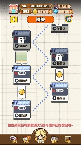 2、玩家能够投入更多资金来升级网红主播的配置,体验公司管理类游戏的玩法,一同探寻这位网红主播背后的团队,实现批量打造优质网红的目标。
