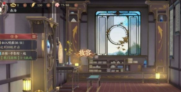 1、创建角色并进入游戏后,完成前期教学流程,等获得自由行动权限时,前往宿舍区域,点击左侧的“妆容”选项,就能开启个性化捏脸功能。