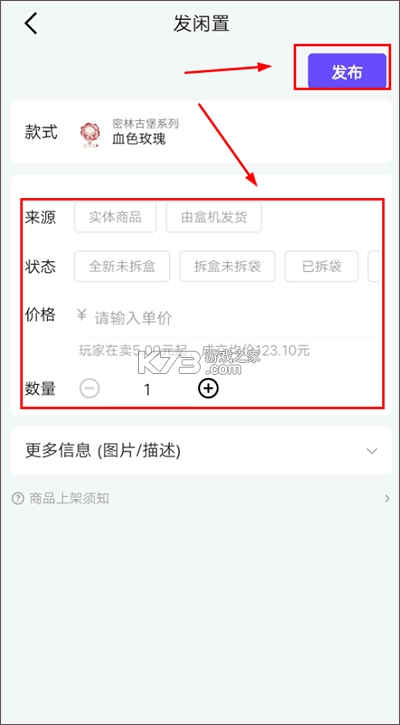 4、填写物品信息后,点击【发布】