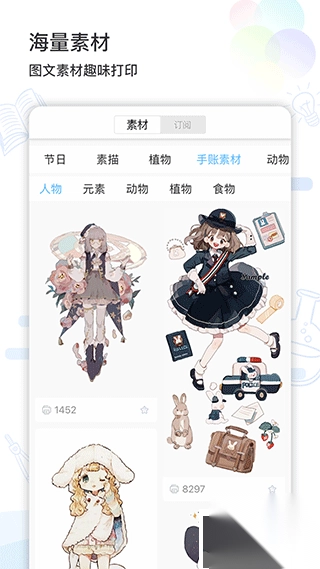 编辑工具,支持素材打印和多种模板选择