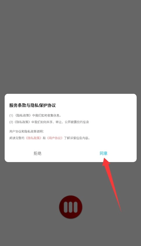 1. 当首次启动无名图书APP,系统会呈现隐私条款与服务协议,阅读完毕后点击“同意”按钮,即可进入主界面。