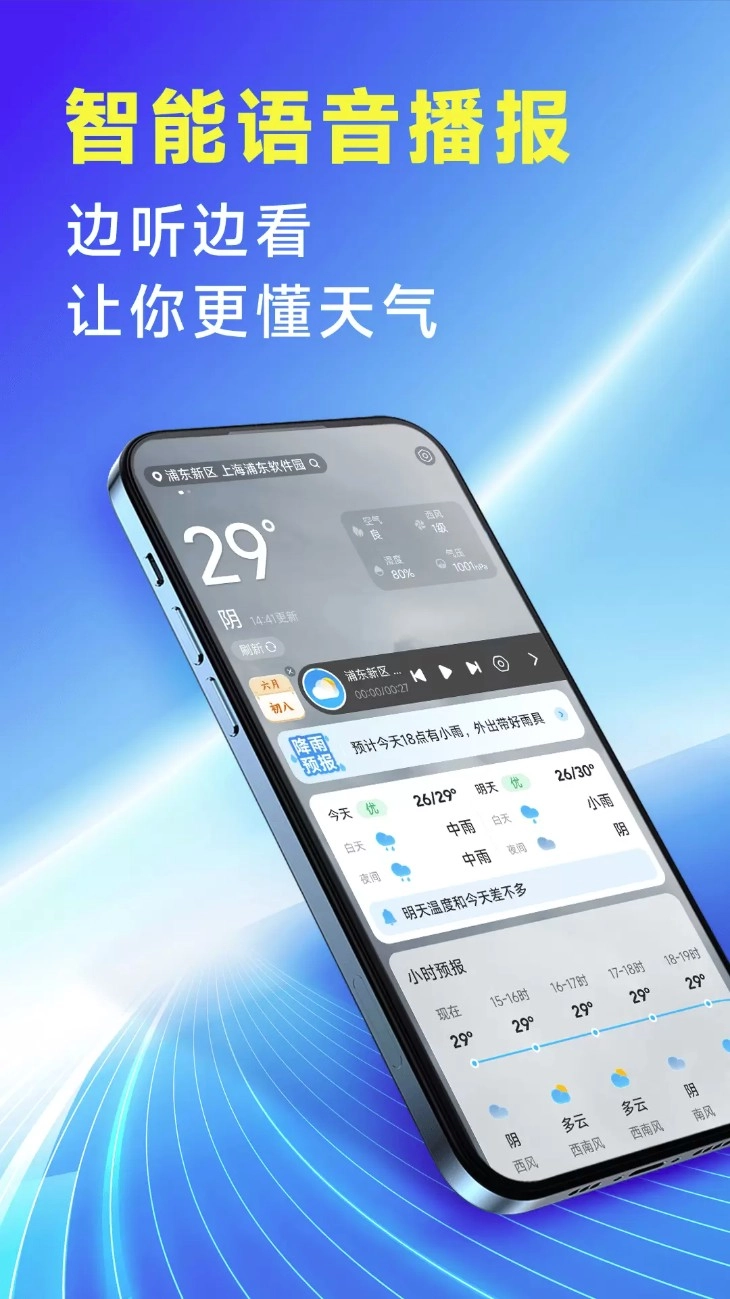 4. 语音播报可一键开启,做饭、运动时听天气更方便。