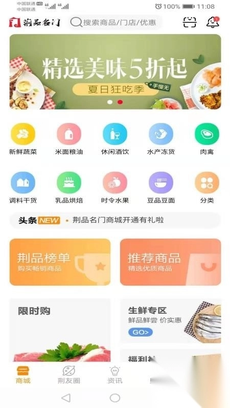 荆品名门app是一款综合性购物软件,融合同城资讯、同城购物、同城交友等丰富功能。它为广大消费者带来诸多超值优惠的购物体验。平台商品种类丰富,涵盖新鲜蔬果、米面粮油、休闲酒饮、水产冷冻等不同分类,用户想买什么,直接进入相应分类下方就能查看,以低价选购各类优质商品。