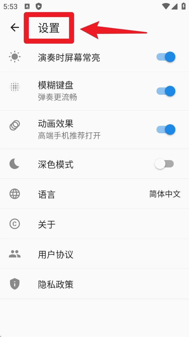 5. 轻点右上角的齿轮图标,进入「设置」界面,在这里能够对深色模式、动画效果以及键盘样式进行调整。