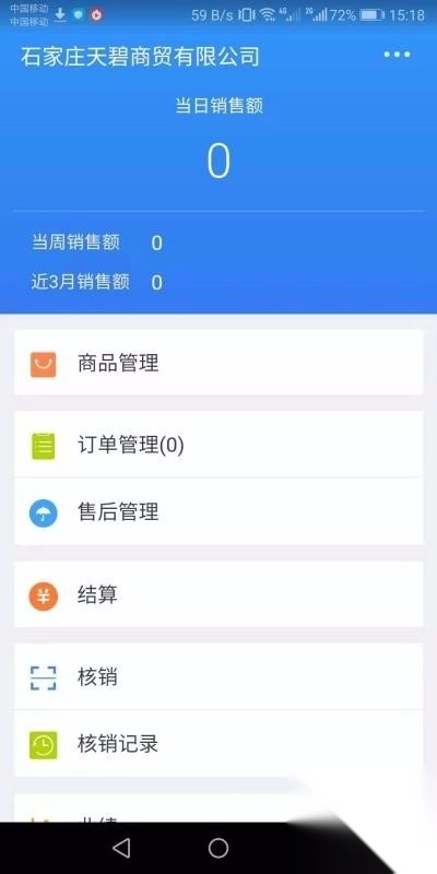 5、选择我的,查看商品管理、订单管理、售后管理、结算等板块内容