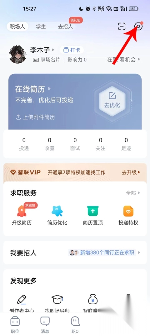 提前准备好能与 HR 开启下一步对话的开场白,或是简洁的两三句自我介绍。当 HR 向你“打招呼”,或者将你标记为“有意向”后,主动出击,让 HR 快速记住你(通常工作时间内 HR 回复率较高,尽量避开周末投递)。要是你对某个职位极为心仪,可考虑使用“投递特权”,对 HR 进行强力提醒,将个人简历置顶,以免 HR 错过你的简历(会员功能需付费,可谨慎考虑)。多筛选、多刷新、多交流,相信在智联招聘上,你定能找到满意的工作。