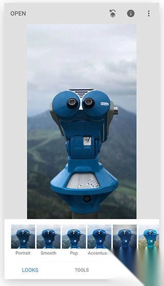 要开始编辑,请点击工具选项卡。这显示了 Snapseed 的所有编辑工具。水平滚动以查看选项,然后点击以进行选择。