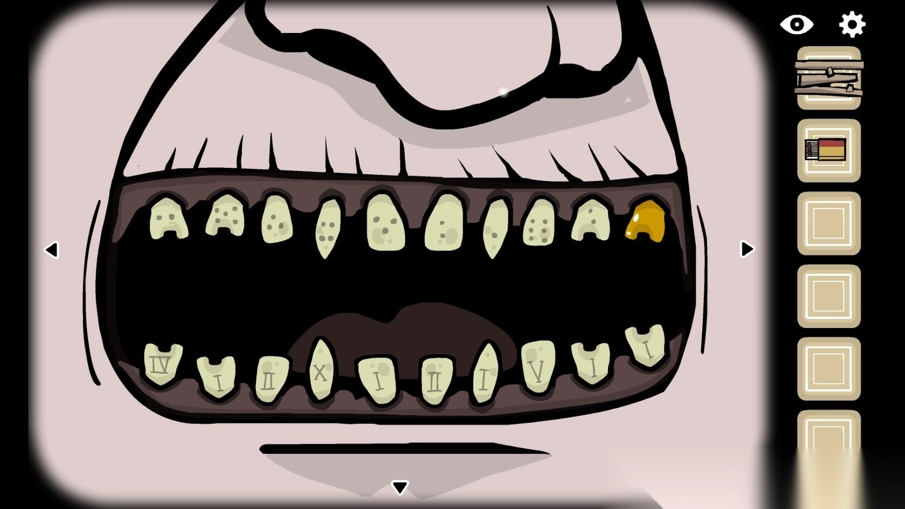 7、隔间内可见老奶奶,点击其嘴巴后按顺序点击牙齿;