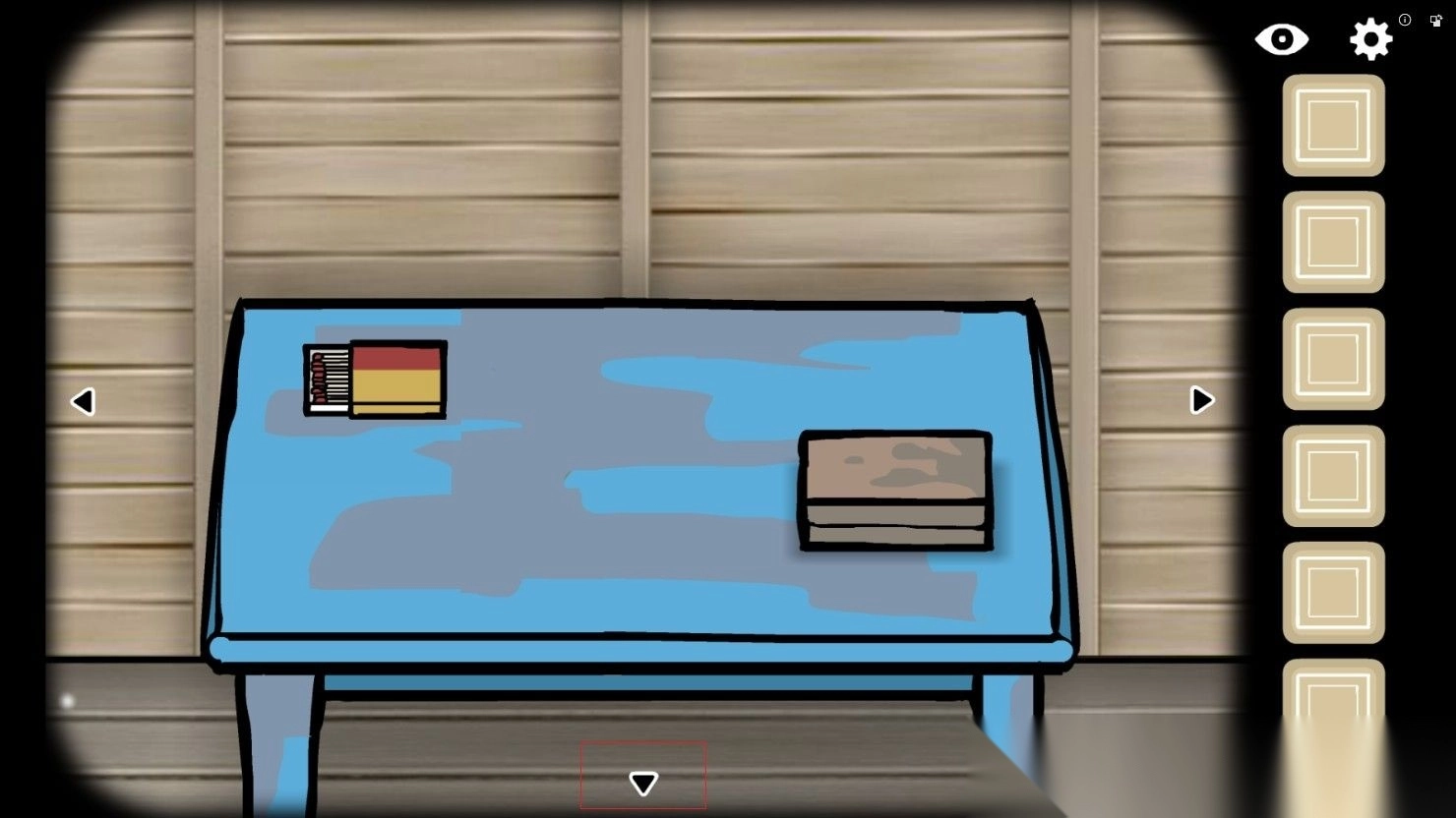 2. 在蓝色的桌子上找寻到火柴盒,点击该桌子进行查看,随后把火柴放进背包。