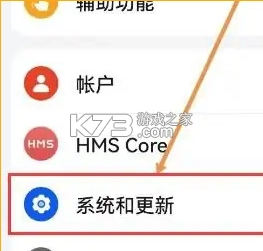 2、进入手机的设置界面后,点击开启系统和更新选项。