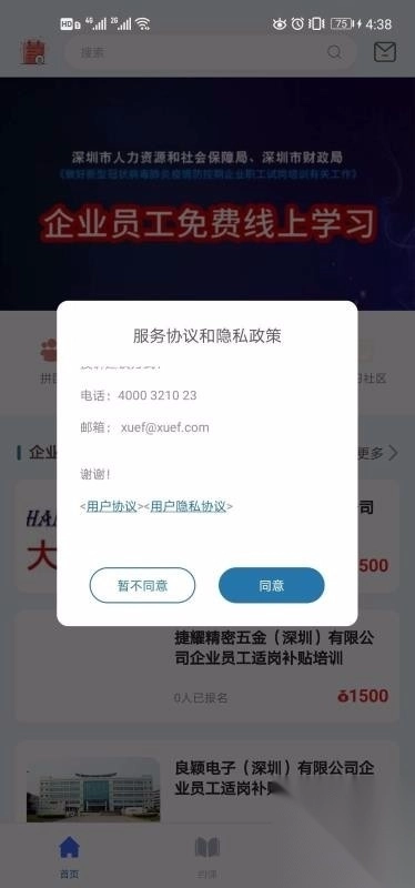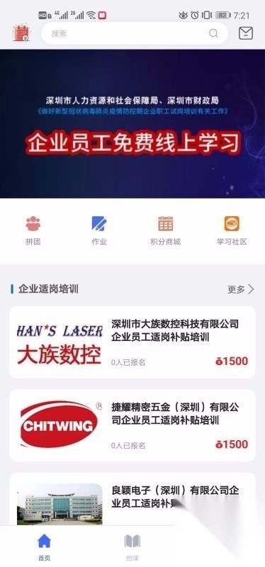 选择首页,即可知晓各类供员工免费学习的内容。