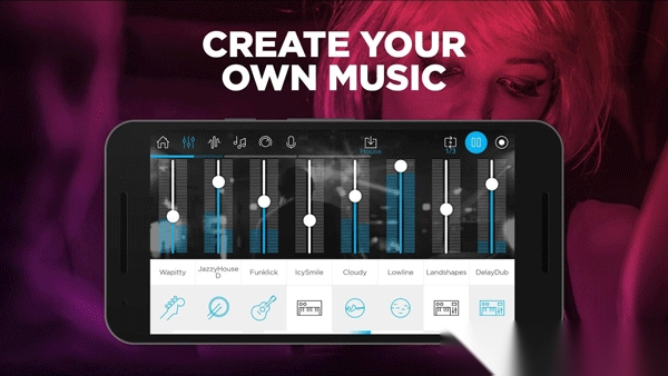 Music Maker Jam具备100余种音乐风格,搭载8通道合成器,任您尽情施展才华。通过直观操作,可轻松组合歌曲片段与乐器,灵活变换声调和节奏,还能实时添加炫酷效果。有了这款软件,音色音质及完美匹配等问题统统无需担忧,它会引领您深度沉浸于音乐世界,甚至助力您在朋友面前完成精彩的音乐现场秀。