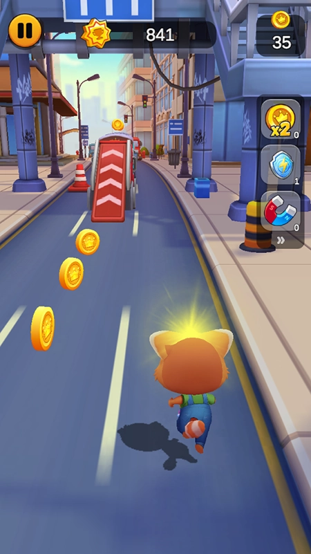 1、《奔跑的宠物猫》官方正版下载之物品收集:收集金币与滑板所蕴含的力量,当力量达到饱和状态,借助两下滑板加速,同时还能拾取一些特殊物品,例如拼图。