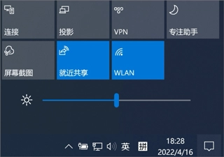 2、如果您需要连接使用的是windows10及以上,请在右下角控制中心内打开就近共享