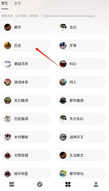2. 点击底部的“类型”选项,即可获取所有分类。