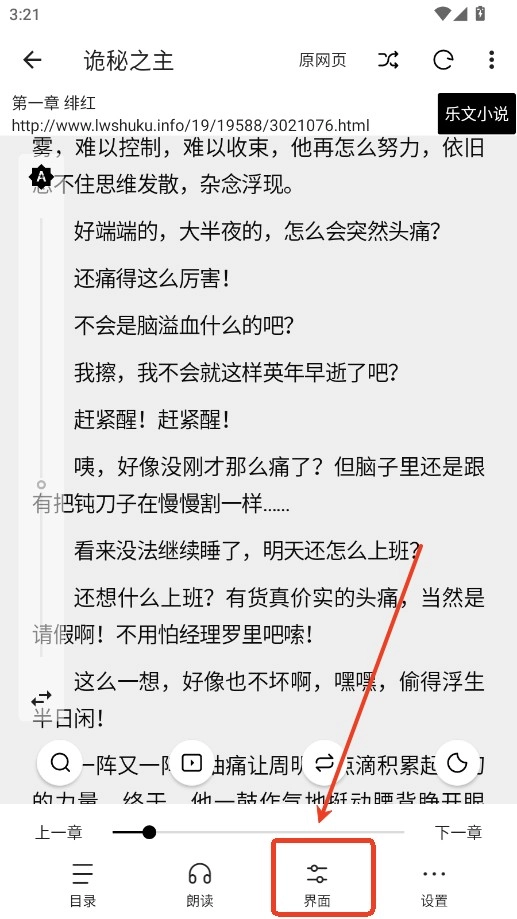 1、在阅读界面点击菜单栏下方的界面按钮