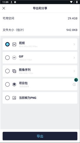 6、一切确认无误后,点击页面右上方的生成按钮,在出现的选项中选择自己心仪的模式,便能导出视频、gif等格式的文件。