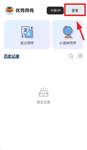 请下载并安装优秀同传app,安装完成后打开该应用。进入应用界面后,点击右上角的“登录”选项。