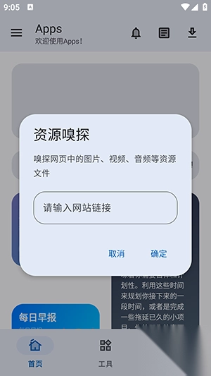 3、进入软件后,软件首页提供资源嗅探功能。