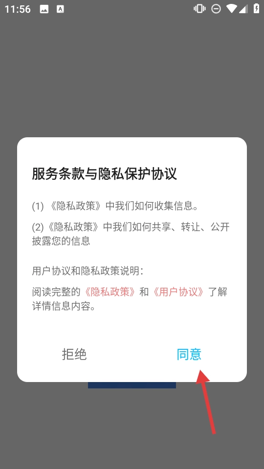1. 阅读《服务条款与隐私保护协议》,明确信息收集规则,点击【同意】开启应用。