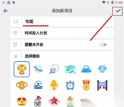 3. 操作完成后,输出所添加项目的标题,接着再挑选一个图标。