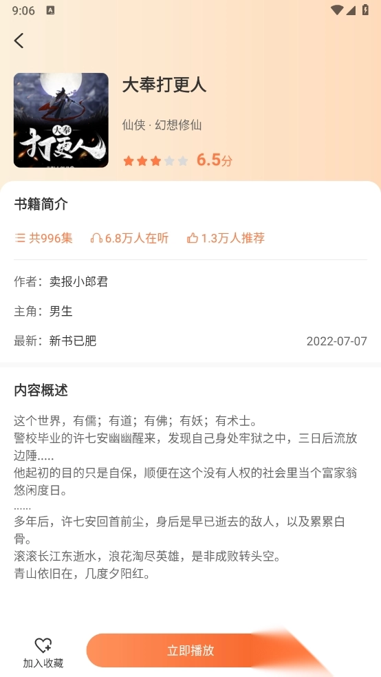 收藏功能:轻松收藏喜爱书籍,方便日后阅读或听书。